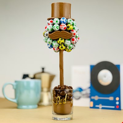 This Father's Day Football Hat and Moustache Sweet Tree really is edible right to the core; the only bit you can’t eat is the stem and vase. Each tree is carefully hand made by clever little sugar elves! Each tree has a Belgian chocolate crispy crunch centre, so once you have picked off each of the chocolate footballs, and eaten the chocolate hat and moustache, there is no need to stop! Add your very own loving message to your order and the clever pixies at the chocolate creation hub will ensure that they use their neatest handwriting to add your message in cursive handwriting to the glass base. Every tree is cellophane wrapped with a satin ribbon, then protected with lots of bubble wrap and sent in a made to measure box, to ensure your tree arrives safely. A great unique gift idea for every sweet tooth this Father's Day, especially football fans!