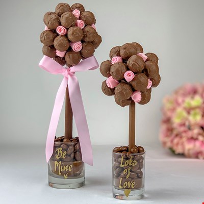 The Valentines Salted Caramel and Pink Roses Truffle Sweet Tree is perfect for that something just an extra bit special. Forget all those cliched gifts and give that lovely someone a truly unique and 'scrumptious' gift instead. Hand made in Britain, these edible trees will surprise and delight any lucky recipient. A great alternative to fluffy teddy bears or a bunch of flowers, personalise with your own message! Made with lots of delicious truffles to tuck into, this is a great gift for any person in your life that you want to spoil!
