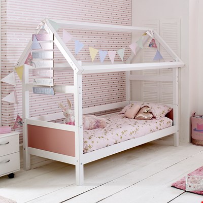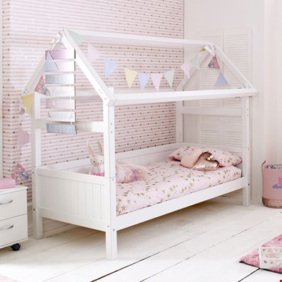The Nordic Playhouse Bed Frame 1 is the bed of your kid's dreams! Or maybe your dreams? We're sorry though this bed is just for kiddies! Manufactured from solid pine and MDF the fresh white colour will easily coordinate with any interior style and is sure to make an impact. Bedtime will be one easy task with your littlun knowing this beauty awaits them. So pop up some bunting or fairy lights and create the perfect sanctuary for your little one with a kids house bed. There is even the option to change the colour or design of the head and footboard so you can make your kiddies bed individual to them!