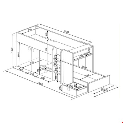 - Mattresses size required: 90 x 200 cm (top bunk must not exceed 15cm in height)