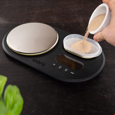 Weigh out your ingredients to a tenth of a gram with the Ooni Dual Platform Digital Scales. Designed with a dual LCD display and two platforms, accurately weigh out your ingredients for the perfect pizza dough! Not just to be paired with your Ooni Pizza Oven, use your scales in the kitchen for baking and home-cooking. Featuring the Ooni branding, don't forget the matching pizza peels, accessories and cookbook to complete your set!