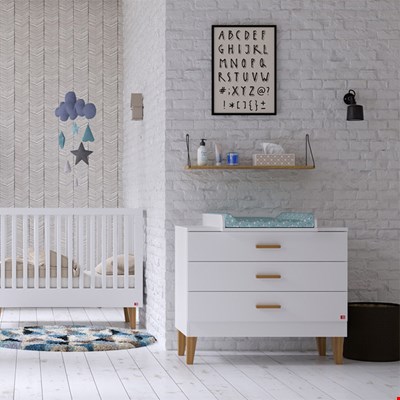 The effortlessly stylish Lounge Chest of Drawers from Vox is the perfect storage solution if you're looking for contemporary nursery furniture. Beautifully made from high-quality laminated board and finished in white with solid oak details you may want to keep this stunner for yourself! The three spacious drawers offer up plenty of space for all your kiddies clothes and with the option to add a changing table you can create the ultimate baby changing area, keeping all those nappies, wipes and other essentials close at hand! Then when it is no longer needed, you are left with a gorgeous chest of drawers that will see your little one into childhood and beyond!