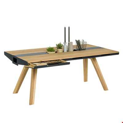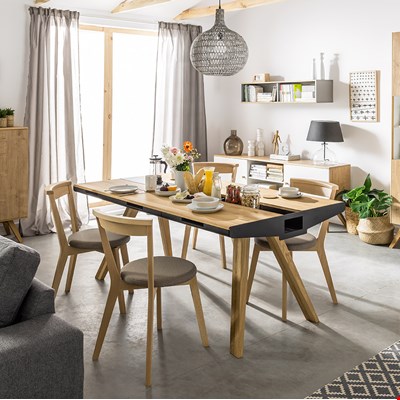 The table that has it all! Style, sophistication and storage, the Nature Oak Dining Table with Drawers from Vox is a truly stunning piece of furniture that is sure to revamp your dining experience. Manufactured from oak, this beautiful table has been cleverly designed with a metal opening in the middle that can either be covered, left open or, half open if you fancy! Then you can pop in whatever your heart desires, be it herbs and spices, a vase of flowers or a few cheeky bottles of wine whilst wining and dining friends and the metal covers in the centre of the table are perfect for placing hot pots and pans straight from the oven - dinner has never been so easy! As if that wasn't enough this table also has drawers! Perfect for cutlery, placemats or just to keep those odds and ends all in one place! This is one table that is sure to impress and would be a welcome addition to any dining room or kitchen.