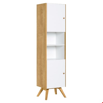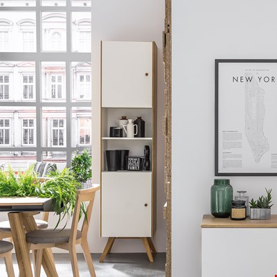 Name Vox Nature Tall Display Cabinet with Lights in White & Oak Effect