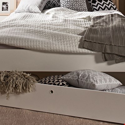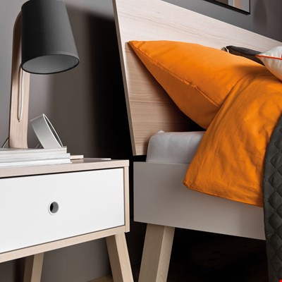 This fabulous Spot Bed is a great choice if you are looking for a contemporary bed to spend your nights in. From a collection of stylish furniture by Vox, this modern bed will give you plenty of space to enjoy those weekend lay ins... breakfast in bed, reading the newspaper...we all do that, right?! Finished in light acacia and white and available in a choice of 3 sizes 140 x 200 (double) 160 x 200 (King) and 180 x 200 (superking), so even if you share the bed with an American football player you won't be lacking room to sprawl! With the option to add under bed storage drawers, providing a great solution for keeping your bedroom spotless, why not check out the entire bedroom furniture  collection from Vox, available here at Cuckooland - careful though you may not want to leave your sanctuary and face the world!