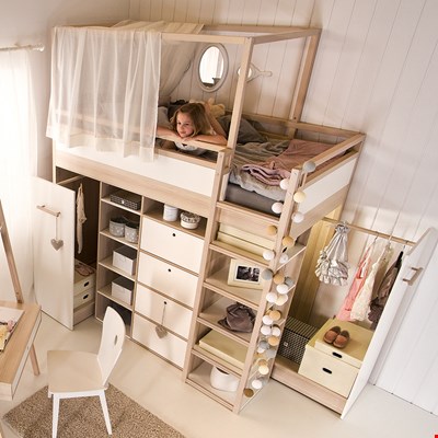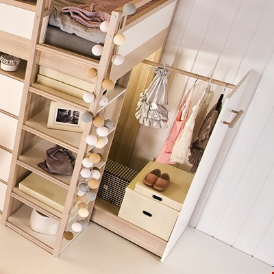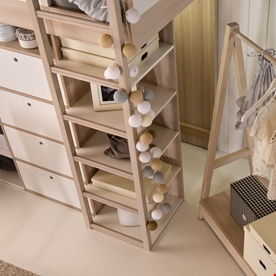 The Spot High Sleeper Storage Kids Bed by Vox truly is one-of-a-kind! The perfect space saving solution to your kiddies bedroom. This amazing bed comes complete with built-in shelves and drawers, as well as a walk-in closet behind with shelving - ideal for those mini-fashionistas or den-builders! On top of all that you can then choose to add the optional pull out clothes rail, to add even more storage space, a sliding table for the perfect cosy homework set up and a canopy to transform the bed into a 4 poster bed, add some fairy lights to create the sleep station of their dreams! Modular, dynamic and customisable, it's easy to see why this unique kids bed won the prestigious IF Design Award 2015 in the Home Product category. With a host of matching children's furniture items also on offer, Vox really have got it Spot-on with this multi-functional new range!