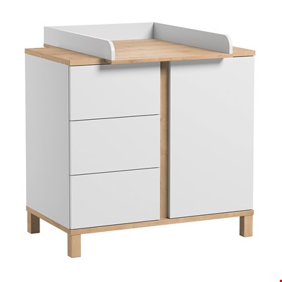 Storage is essential when you have a newborn! Helping save you space, the Vox Altitude Baby Changing Unit offers plenty of room for essentials keeping the nursery clutter-free. Featuring 3 separate drawers, clothes and accessories can be neatly folded away and nappies and bedding can be kept handy inside the full length cupboard with 2 shelves. Perfect for night time changes, the changing top can be added to convert the unit into a baby changing table and can just as easily be removed and stored when you're finished. Not just for tiny tots, continue using this gorgeous design for years to come. Available in a choice of colours with matching furniture available from the Altitude range, including a spacious double wardrobe, make sure the nursery is ready for your little man or miss!