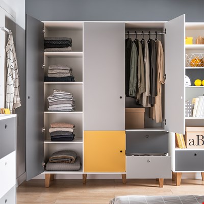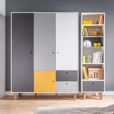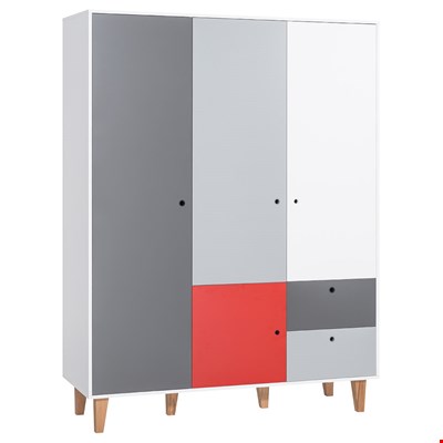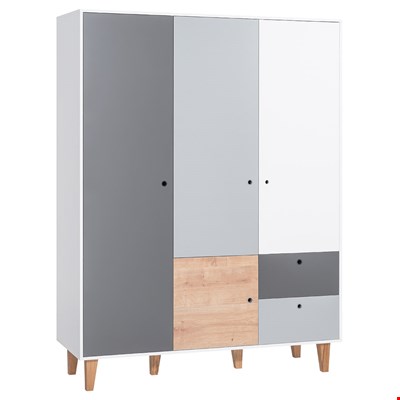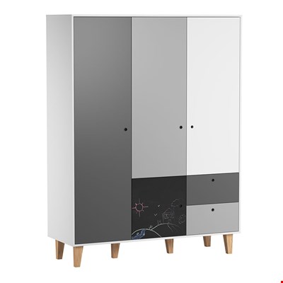Keep your clothes organised to perfection with the Concept 3 Door Wardrobe in Grey & Black from Vox. With a large hanging space and four shelves that can be positioned how you choose, your kiddie will have no trouble keeping their clothes in order! Plus the two drawers will be perfect for storing blankets, bed linen or towels! The simple colour palette of grey and white will bring a touch of Scandinavian style to any room whilst the blackboard panel allows them to add their own personal touch. Your youngster is sure to love it!