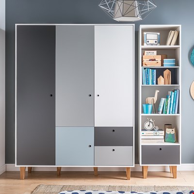 Keep your clothes organised to perfection with the Concept 3 Door Wardrobe in Grey & Blue from Vox. With a large hanging space and four shelves that can be positioned how you choose your young adults will have no trouble keeping their clothes in order! With the addition of drawers, it's perfect for storing blankets, bed linen or towels! With its simple colour palette of grey and white, it will bring a touch of Scandinavian style to any room whilst the blue door adds a fun splash of colour! Your youngster is sure to love it!