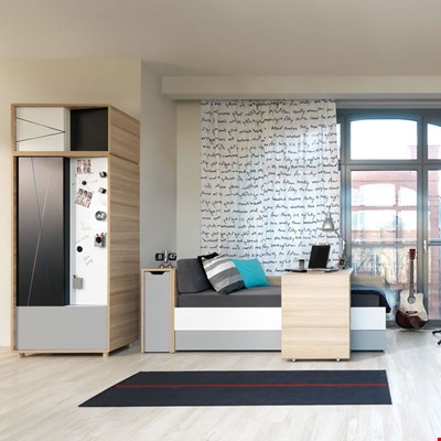 Contemporary and stylish, the Vox Evolve Kids Sliding Desk is perfect for smaller bedrooms. The simple white, grey and oak effect finish will look gorgeous and add a modern touch wherever it is placed and being on wheels, moving this beauty from A to B will be as easy as 1, 2, 3! With drawers and shelving, there will be plenty of space for all those bits and bobs whilst the desktop offers up more than enough room to create that latest masterpiece or knuckle down on that homework. Complimenting the Evolve Day Bed perfectly, sliding it back and forth when needed you're youngster will love having this over their bed! For a laptop to watch movies? To do some colouring? Or even to have some breakfast in bed! Whatever it's used for it will be a handy addition.