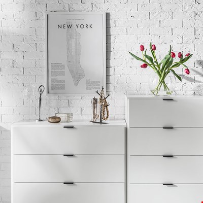 Keep your clothes folded to perfection in the Simple Chest of Drawers from Vox. The four large drawers will have no trouble holding all your bits and bobs. With the Simple range you can design it to suit you! Pick the colour of the body, the front, the handles and the style of the legs to fit your interior. Opt for all one colour or mix and match to make a piece unique to you. Place it in your bedroom or the guest room, whatever combination you choose, these drawers will ooze style.