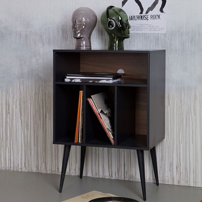 Store your LPs in style with the Woood James Record Storage Cabinet. Manufactured from FSC pine with a stunning matte black finish and walnut veneer detail is sure to bring some style to your home and your record collection! The three compartments have been specially designed to fit LPs allowing you to keep your collection (or part of it!) neatly stored. Not just a record storage unit, this little cabinet could be used as a side table or for books. With other items available in the James range, why not create a coordinating theme throughout your home.