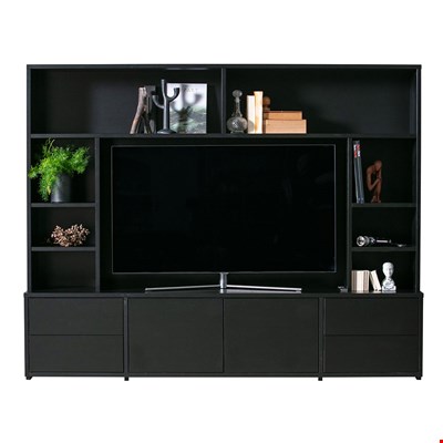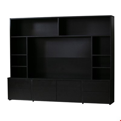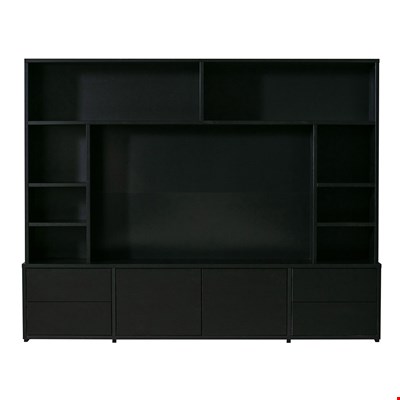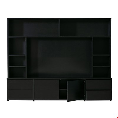 For the ultimate home entertainment storage look no further than the Maxel TV Cabinet from Woood, this large TV unit has space for everything! Shelves, open compartments, cabinets, drawers. Literally, this wall unit has space for everything. Manufactured from pine with a matte black finish, this sleek piece of furniture is sure to look good holding all your bits and bobs. With this storage giant, keeping your electronics neatly tidied away will be easy. Whether you use it to hold your extensive DVD collection or to display your knick knacks, Maxel will be happy to do so.